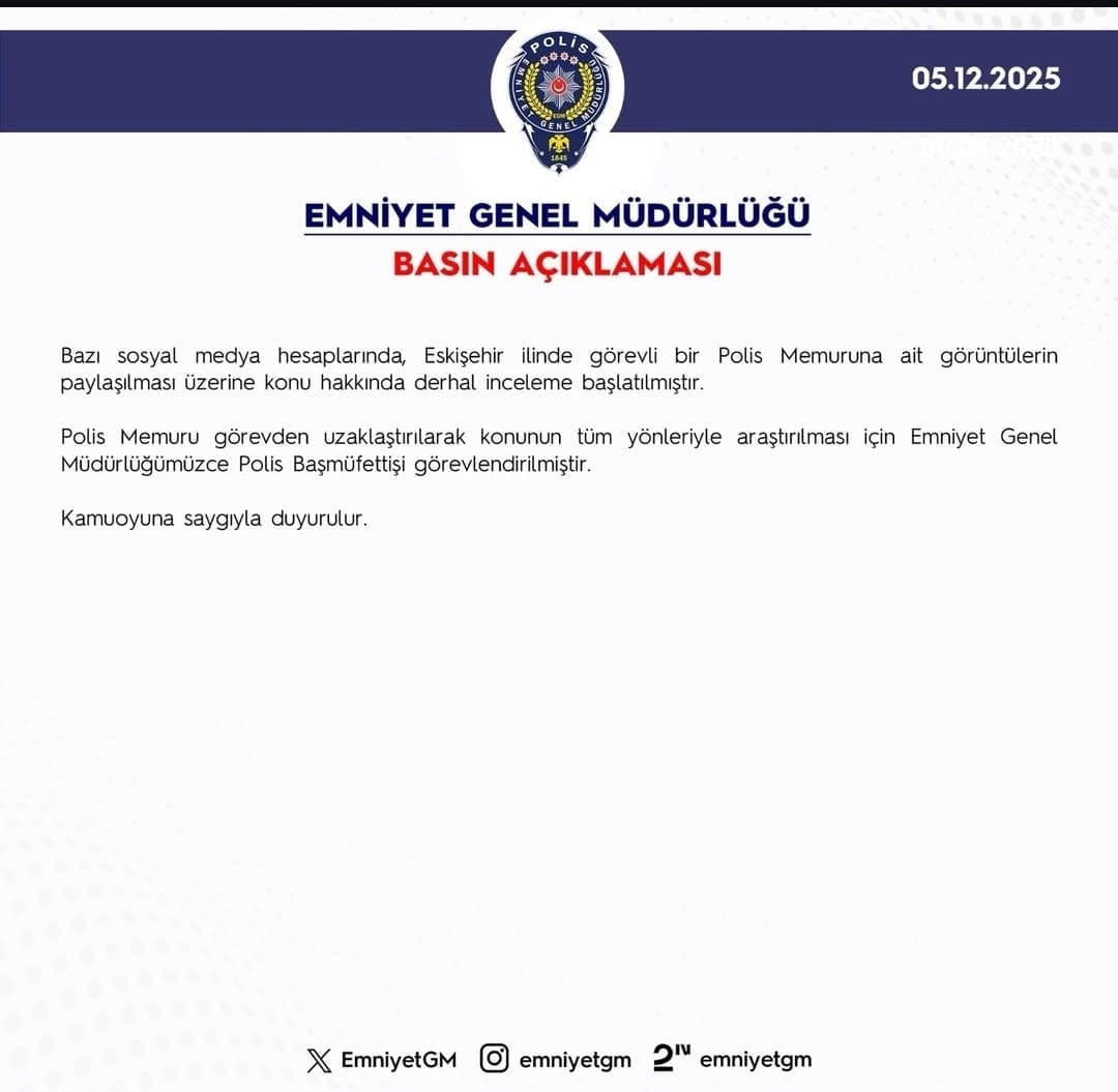 “Bazı sosyal medya hesaplarında, Eskişehir ilinde görevli bir Polis Memuruna ait görüntülerin paylaşılması üzerine konu hakkında derhal inceleme başlatılmıştır.